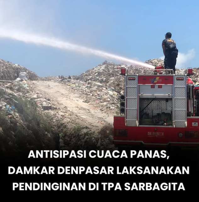 Cuaca panas ekstrem yang melanda Kota Denpasar dalam beberapa hari terakhir mendorong Dinas Pemadam Kebakaran dan Penyelamatan (Damkar) mengambil langkah antisipatif guna mencegah potensi kebakaran di kawasan rentan. Pada Kamis (16/10), dua armada Damkar diterjunkan ke Tempat Pembuangan Akhir (TPA) Regional Sarbagita Suwung untuk melakukan penyiraman atau pendinginan area. Kepala Dinas Damkar Kota Denpasar, I Made Tirana, menjelaskan bahwa langkah ini merupakan tindakan preventif untuk menjaga stabilitas suhu di lokasi yang dikenal menyimpan risiko tinggi akibat kandungan gas metana dalam tumpukan sampah. “Langkah ini merupakan bagian dari upaya antisipatif kami untuk mencegah terjadinya kebakaran di area TPA. Cuaca panas dan arah angin yang tidak menentu dapat memicu titik api dari gas metana. Karena itu, tindakan pendinginan rutin menjadi penting,” ujarnya.