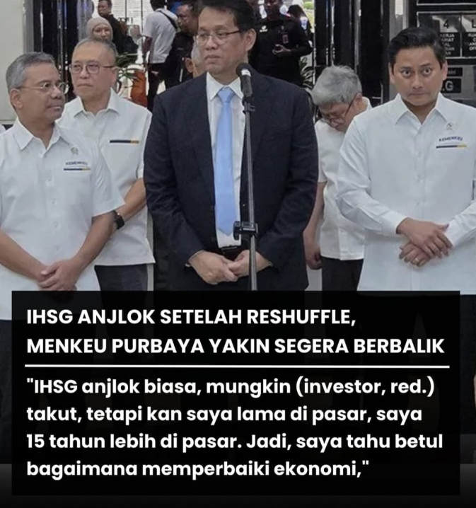 Menteri Keuangan (Menkeu) Purbaya Yudhi Sadewa menyatakan keyakinannya bahwa Indeks Harga Saham Gabungan (IHSG) yang sempat anjlok usai Presiden Prabowo Subianto merombak Kabinet Merah Putih akan segera berbalik naik dalam waktu singkat. Dalam pernyataan perdananya usai resmi dilantik sebagai menteri, Senin (…), Purbaya menyebut IHSG berpotensi pulih setidaknya dalam 1–2 minggu ke depan seiring dengan membaiknya sentimen pasar. Ia menegaskan bahwa pemerintah memahami gejolak yang terjadi di pasar modal setelah reshuffle kabinet, namun meyakini situasi tersebut hanya bersifat sementara. Menurutnya, investor pada dasarnya masih memiliki kepercayaan kuat terhadap fundamental ekonomi Indonesia, sehingga pasar akan kembali stabil begitu arah kebijakan baru pemerintah semakin jelas. Optimisme ini diperkuat dengan komitmen pemerintah untuk menjaga konsistensi fiskal dan memastikan kebijakan ekonomi tetap pro pertumbuhan. Dengan demikian, Purbaya berharap pelaku pasar tidak berlarut dalam kepanikan jangka pendek, melainkan melihat peluang pemulihan yang lebih besar dalam waktu dekat.
