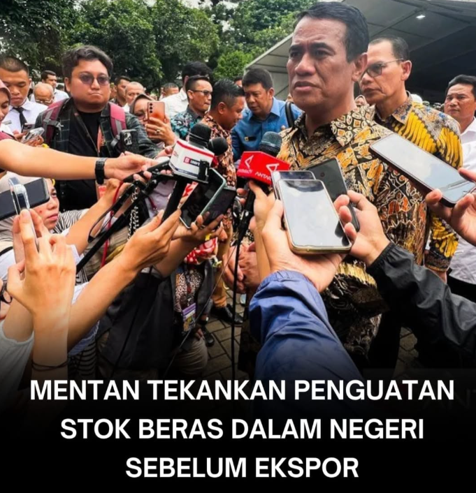 Menteri Pertanian (Mentan) Andi Amran Sulaiman menegaskan pentingnya memperkuat stok beras dalam negeri sebagai prioritas utama, sebelum mempertimbangkan ekspor. Pernyataan ini disampaikan menanggapi lonjakan produksi beras nasional yang saat ini mencapai stok 3,18 juta ton.