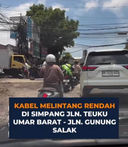 “Benar, ada laporan dari masyarakat mengenai kabel yang posisinya rendah di perempatan Teuku Umar Barat–Gunung Salak. Kami sudah koordinasi dengan PLN dan tim gabungan untuk menanganinya secepat mungkin,” ujar salah satu petugas Dishub Denpasar saat dikonfirmasi.